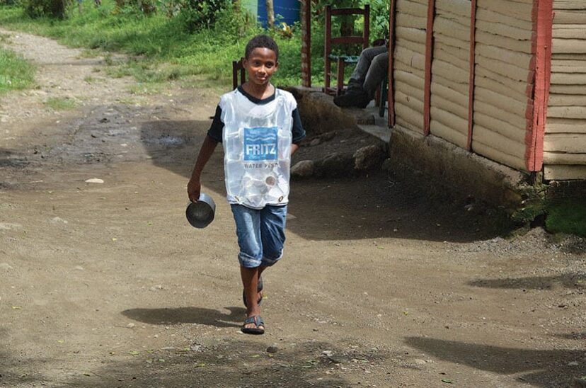 De acuerdo con el panel de jueces, en áreas remotas, el acceso al agua potable requiere que las personas muchas veces mujeres y niños- pasen muchas horas al día llevando contenedores pesados, antihigiénicos y no ergonómicos en la cabeza y los hombros. Esto causa un estrés físico significativo en sus cuerpos con el tiempo y presenta un riesgo grave de contaminación de agua. El chaleco de agua Fritz permite a los usuarios transportar hasta 10 litros de agua de manera segura e higiénica, con el peso uniformemente distribuido en el pecho y la espalda: Es una aplicación innovadora de moderna tecnología de envasado que resuelve los problemas de acceso al agua para las poblaciones en riesgo.