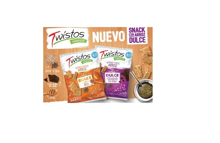 Llegan los nuevos sabores de Twistos Snacks de Arroz Dulce: Sabor miel y Chocolate semi amargo.Argentina.- Twistos, marca integrante del portafolio de PepsiCo, sigue innovando en el segmento de snacks de arroz, complementando su plataforma salada. En esta oportunidad presenta las nuevas Twistos Snack con Arroz Dulce: un exquisito y liviano snack horneado con todo lo bueno del arroz y las semillas, ahora en versión dulce.