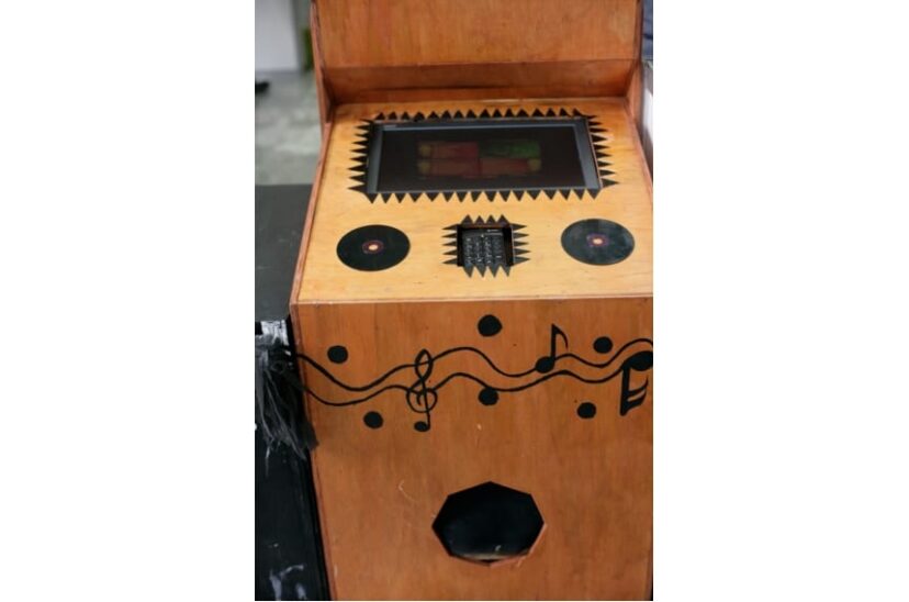El contenedor de madera, de un metro de alto por uno y medio de ancho, tiene una vieja pantalla reciclada de computadora a través de la cual es posible elegir el tema musical cada vez que se introduce una botella de PET. Cuando se realiza esta acción se activa un sensor conectado a la tarjeta madre del equipo de cómputo y comienza a sonar la melodía previamente seleccionada.