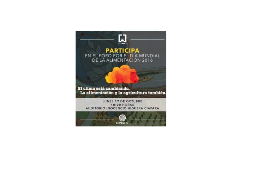 El CIAD llevó a cabo El Foro por el Día Mundial de la Alimentación 2016 como parte de su compromiso institucional de contribuir al bienestar de la sociedad.Con motivo del Día Mundial de la Alimentación, que en su edición de este año lleva como lema El clima está cambiando. La alimentación y la agricultura también, el Centro de Investigación en Alimentación y Desarrollo (CIAD) realizó un foro en el que discutió las opiniones de diferentes ponentes en torno a este tema.