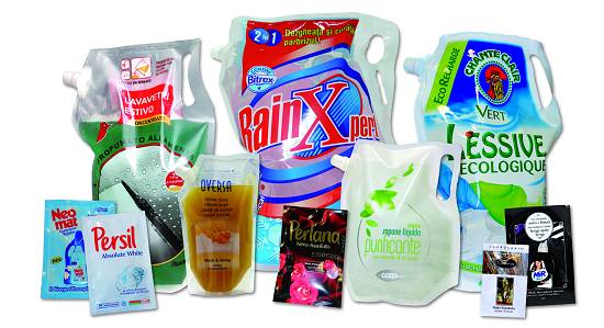 Internacional.- Los envases pueden ser bolsas planas o stand-up con un formato de 100 ml a 10l, y se pueden utilizar como recargas (ejemplo: jabón líquido para las manos) pero también como recipientes listos para su utilización (productos para verter y dosificar como líquidos limpia parabrisas), ya que poseen un sistema de apertura facilitada (corte láser), manillas para el transporte y varios tipos de boquillas para un empleo más fácil y práctico.