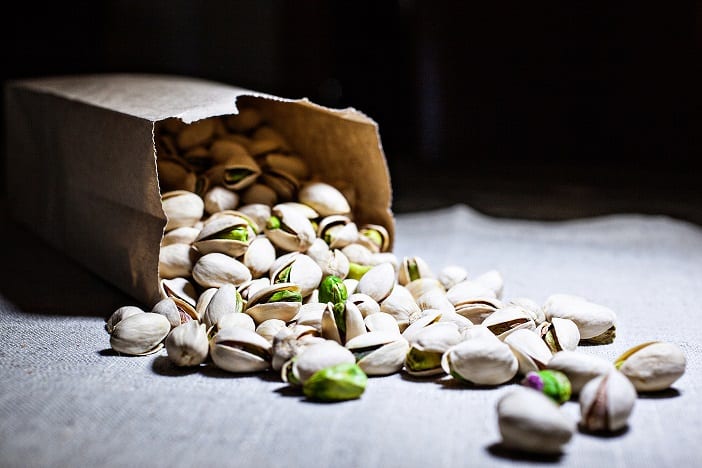 En cuanto a el pistache, "contiene una cubierta dura que constituye el 50% de su peso y que se debe desechar, obteniendo una semilla pequeña de color verde, dado por la luteína, con una delgada piel comestible alrededor, que debe su color morado oscuro a las antocianinas que contiene, ambos potentes antioxidantes".