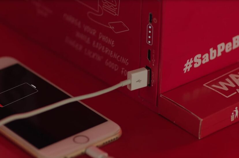 Nueva caja de KFC cuenta con cargador y cables para la batería del celular.