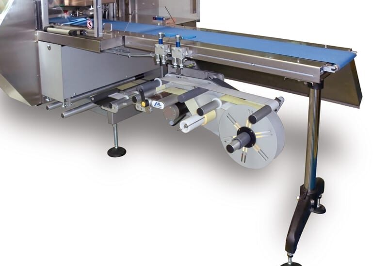 Synchropack propone una solución práctica y rentable para etiquetar sus productos envueltos: integrar un cabezal etiquetador en la propia envolvedora flowpack, consiguiendo así una perfecta colocación de la etiqueta, en la posición exacta y sin arrugas.