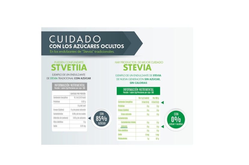 Indicaron que siempre hay que leer la etiqueta del producto y revisar todos sus componentes para tener la certeza de que se trata de un producto natural y 100% libre de azúcar.La historia de la stevia se remonta a 200 años atrás. Proviene de un arbusto de zona tropical, que empleaban los guaranís de Paraguay. Su nombre original es Ka'a eirete que significa hoja muy dulce. Por esa razón los indios la masticaban y usaban para endulzar bebidas y medicinas.