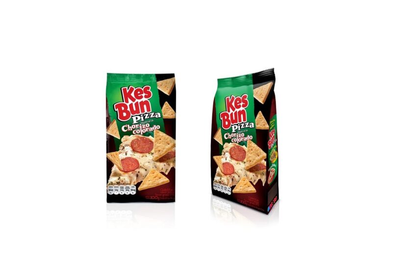 Con un inconfundible sabor, la pizza hecha snack de Kesbun está disponible en kioskos y supermercados de todo el país en packs de 100 gramos.
