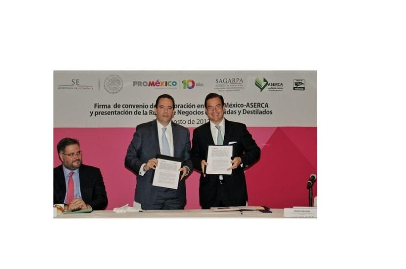 El director en jefe de la Agencia de Servicios a la Comercialización y Desarrollo de Mercados Agropecuarios (ASERCA), Alejandro Vázquez Salido, y el director general de ProMéxico, Paulo Carreño King, firmaron un convenio de colaboración para el fortalecimiento de los sectores productivo y agroindustrial con el cual se fomentará la generación de oportunidades de negocios, la capacitación y promoción internacional que fortalezca el desarrollo de proyectos y el impulso a la diversificación de mercados y la exportación de productos agroalimentarios.